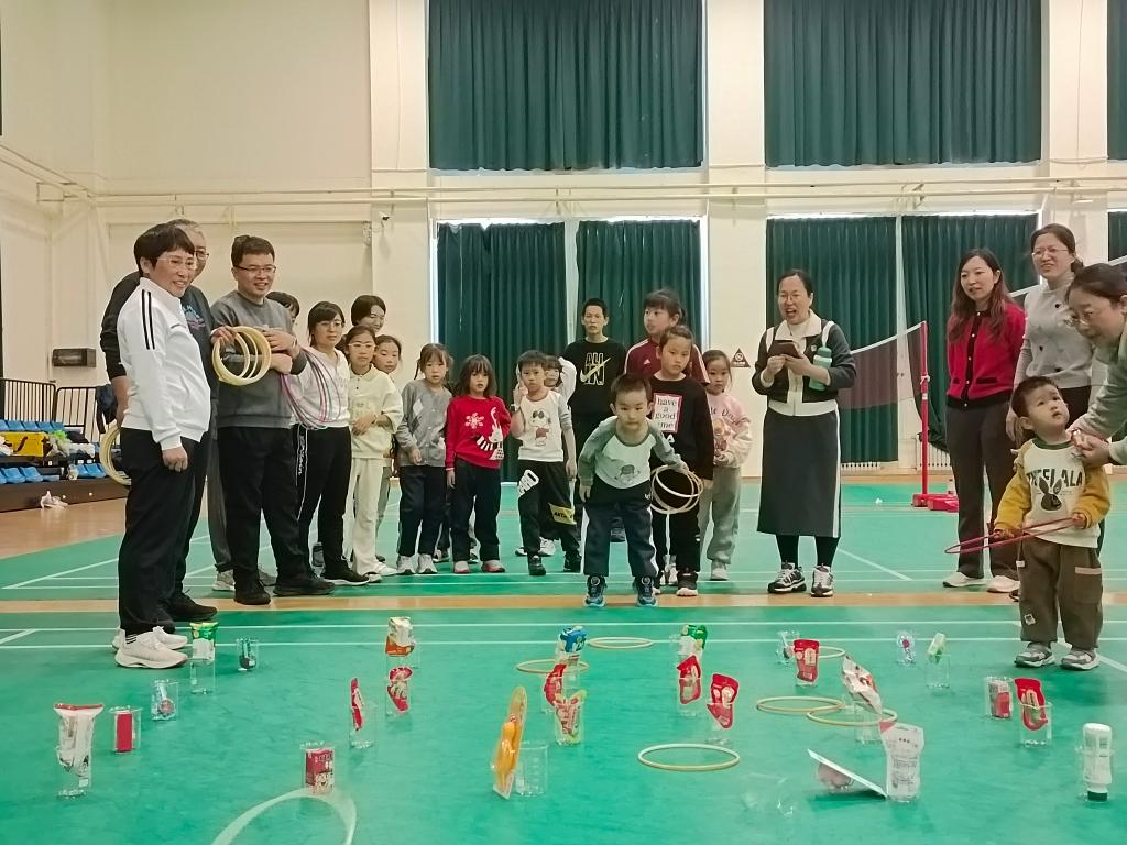 本次趣味运动会设有单人项目、双人与亲子活动和集体项目等多个板块,形式多样,趣味盎然。上午九点半,活动在轻松愉快的氛围中拉开帷幕,参赛者们以饱满的热情投入到每一个项目中。单人项目如托球跑、篮球运球跑、沙包掷准和足球保龄球等,考验了个人的技巧与反应能力,展示了教职工们在竞技中保持的专注与自信;双人及亲子活动,如抛接沙包、双人抬轿和呼啦圈火车等,既考验默契配合,又充满温馨和欢笑,为活动增添了互动亮点,拉近了教师们和家人们之间的距离;集体项目如摸石过河、呼啦圈接力和互换阵地等,将竞技与协作紧密结合,参赛教职工们全情投入,全场气氛热烈,展现了教职工们昂扬的精神状态和团队协作的力量。在一片笑声和掌声中,运动会最后以轻松有趣的“幸运套圈”活动结束,为全场带来了更多惊喜与欢乐。
