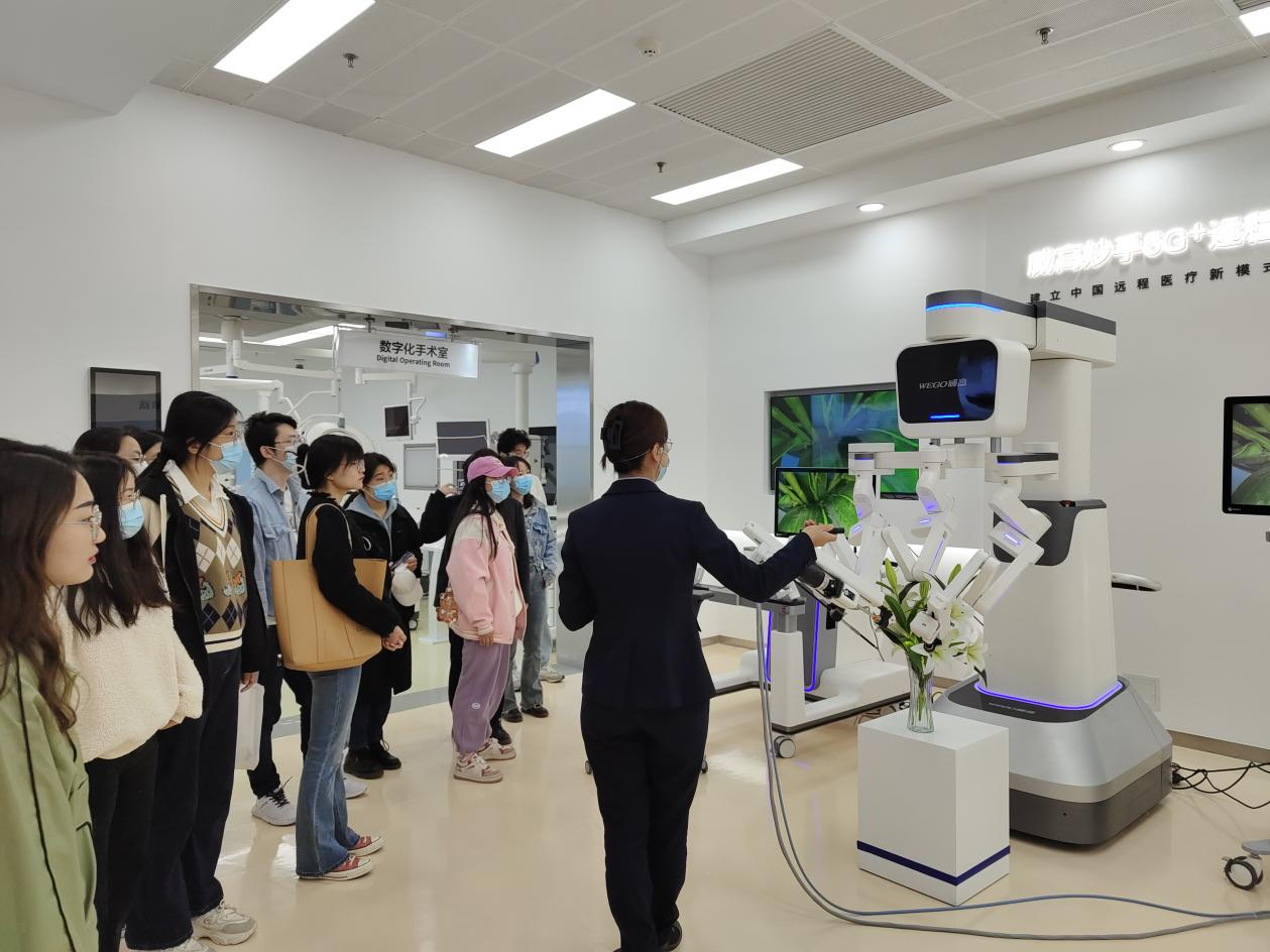 在威高集团产品展示中心,同学们通过观看宣传片,对威高的组织架构、园区建设、产业规划、人才队伍等情况有了初步了解。随后,栾世方详细介绍了威高集团与全国多家知名高校、科研院所开展产学研合作,大力加强创新体系建设,研制多种产品打破国外垄断的有关情况。同学们在表达由衷赞佩的同时,还就留置针、可吸收心脏支架、手术床、手术机器人、骨科器材等一系列高科技产品涉及到的材料相关知识进行了现场探讨。期间,师生一行深入威高洁丽康生物材料有限公司生产车间观摩种植牙生产流程。