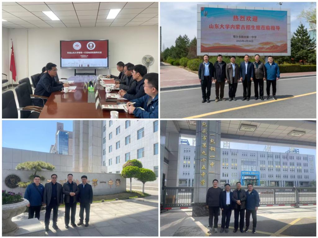 山东大学内蒙古宣讲团队与各重点中学一线教师在学生培养、志愿填报、新高考等方面进行充分交流。在呼和浩特市第二中学的座谈会上,王亮与该校主要负责人就学生培养、新高考情况展开深入探讨。我们特别关注边疆地区学生的成长特点,希望通过建立常态化交流机制,将山大的科研资源转化为中学的创新教育动能。包头市包钢一中梁志军副校长在交流中表示:山东大学作为“双一流”建设高校,其“为天下储人才,为国家图富强”的办学理念与我们培养担当民族复兴大任时代新人的目标高度契合。在鄂尔多斯一中,与白玉亮校长在学生培养、学生学科报考等方面进行了深入交流。宣讲团队特别带去了毕业于内蒙古的山东大学优秀学子成长档案。