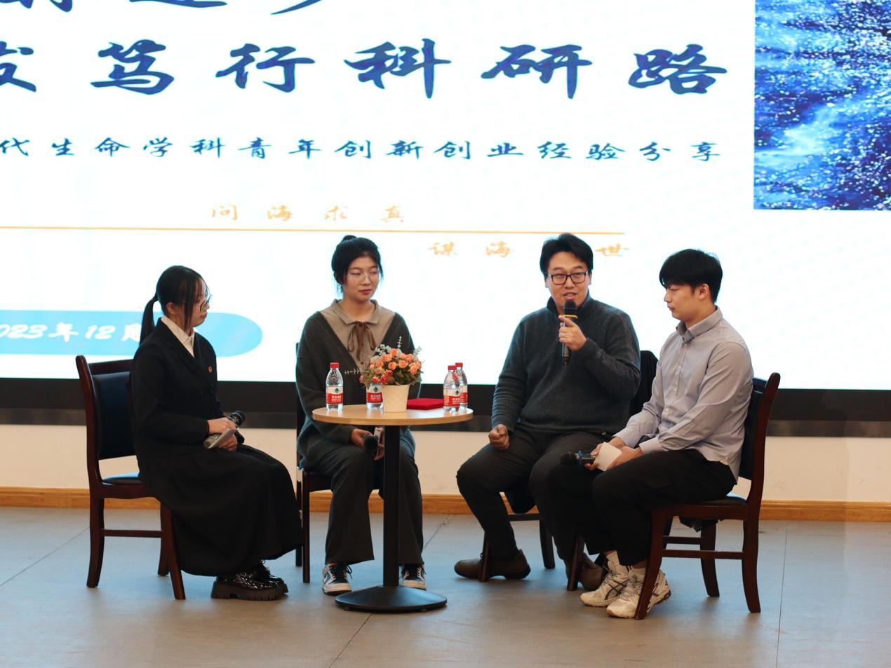 王浩然结合国内外求学经历及求职创业过程分享了个人经验和感悟。他向学生提出三点建议:一要早期作出人生规划,有效提升自己;二要保持浓厚兴趣,跟随兴趣开展创新创业;三要保持探索心态,关注行业前沿科研成果。