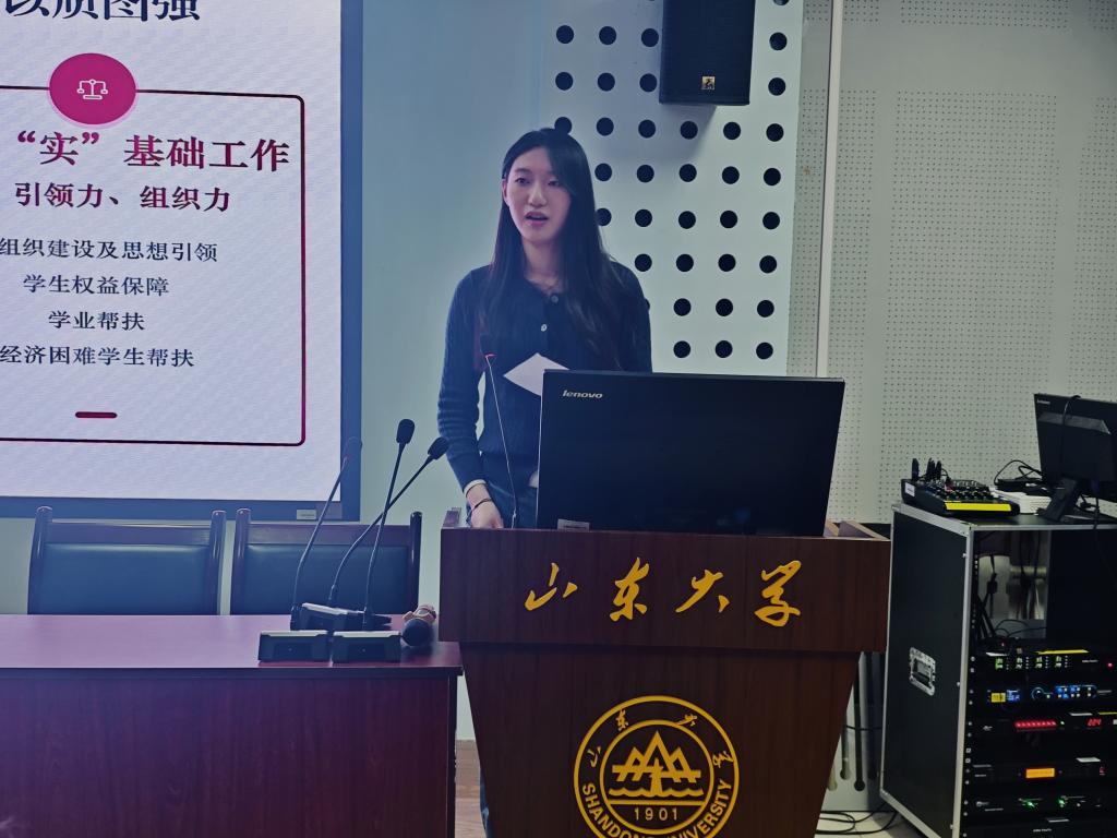 在交流环节,团委学生副书记毛雅楠总结了去年工作成果,围绕思想引领、组织建设、队伍建设等进行交流汇报。学生会执行主席韩昊彤从服务同学、科创实践、文体活动等方面汇报工作成效。班级代表孙铭赫从制度建设、团体活动设计等维度分享了增强班级凝聚力与成员归属感的做法和经验。