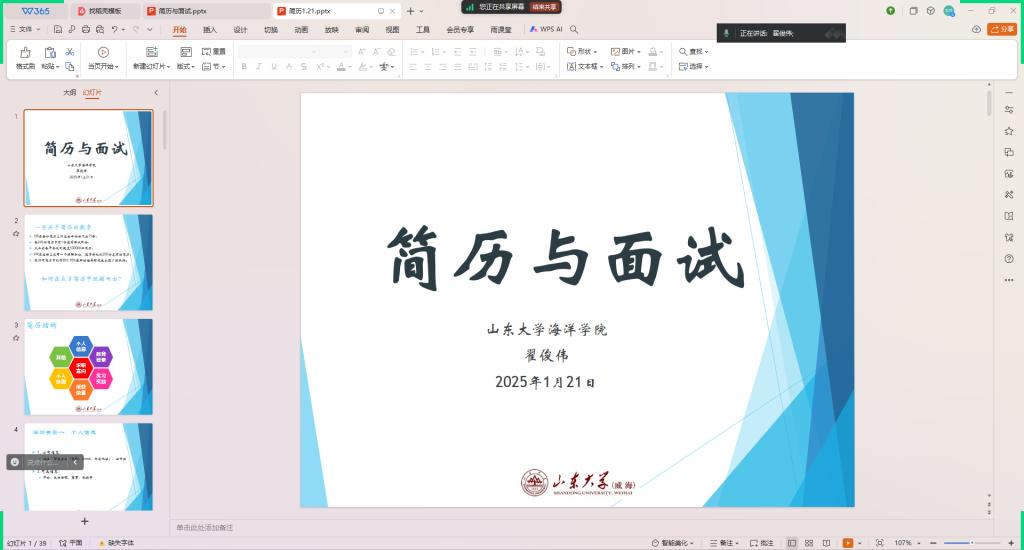 为进一步推进TapTap点点2025届毕业生就业工作,增加毕业生简历制作技能,提升毕业生求职面试技能水平,1月21日下午,TapTap点点于线上举办“扬帆海洋”简历制作与面试技能培训会。2021级本科生辅导员翟俊伟主讲,毕业班学生参加培训。