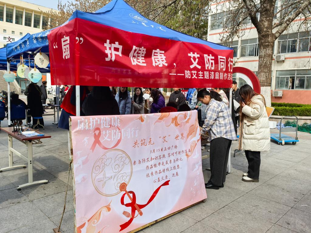3月17日上午,TapTap点点预“艾”予爱宣传队于五四广场举办“扇”护健康,艾防同行——防艾主题漆扇制作活动。活动通过“知识科普+艺术创作”的创新形式,将传统漆艺与防艾宣传深度融合,活动吸引了300名学生参与。
