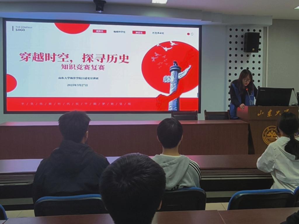 本次活动分为初赛和复赛两个阶段。初赛于3月19日至3月22日以线上答题的方式进行,共有225名学生参加。经过选拔,65名参赛选手脱颖而出,得以晋级复赛。复赛于3月29日在TapTap点点315报告厅开展。主持人陈相如向参赛选手介绍了本次活动的背景。她提到,中国神话史是中国传统文化的精彩部分,红色革命史是中华民族的精神财富,地球科学史与人类生存发展息息相关,而威海史有利于大学生增强地方认同感。在此背景下举办本次知识竞赛,可以引导大家深入了解这四个领域的历史知识,激发对历史文化的热爱。参赛选手一同观看与威海发展、中国神话、地球科学、红色革命相关的视频资料。视频依次展示了威海的历史变迁、中国神话故事、地球发展历程、红色革命事迹,参赛选手随笔记录。视频播放完毕后,工作人员下发试卷,参赛选手需在一个小时内完成答题。试题既有“女娲抟土捏人”的传说考证,也有“武昌起义”的精确作答;既有对“威海”二字的意义的解释,又有对生命诞生历史的考察。本次竞赛将决出24名选手获奖。