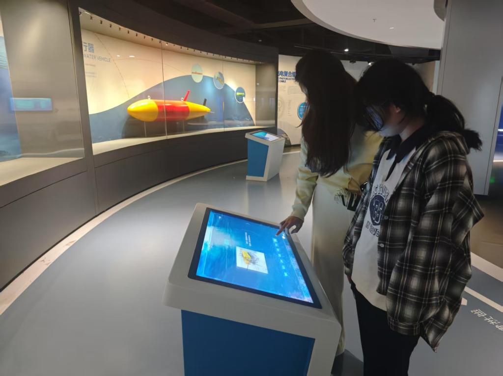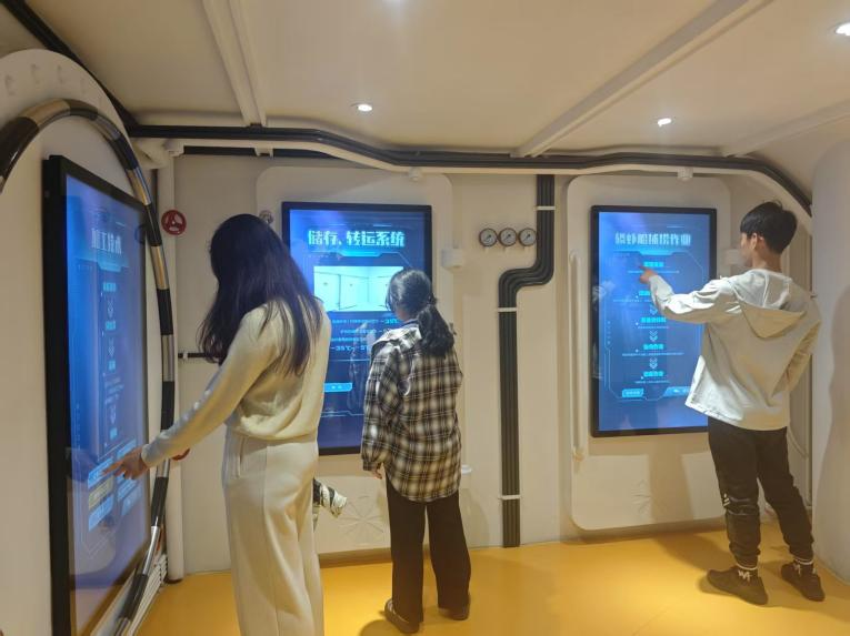 随后,支部成员走进威海市海洋科技馆,近距离感受科技与海洋的融合之美。在“智慧海洋”展区,同学们通过VR设备体验深海探测,目睹AI算法如何分析海洋生态数据、预测赤潮灾害;在“未来实验室”,仿生机械鱼的灵活游动、智能水质监测系统的实时数据演示,让大家直观理解AI在海洋保护中的应用价值。