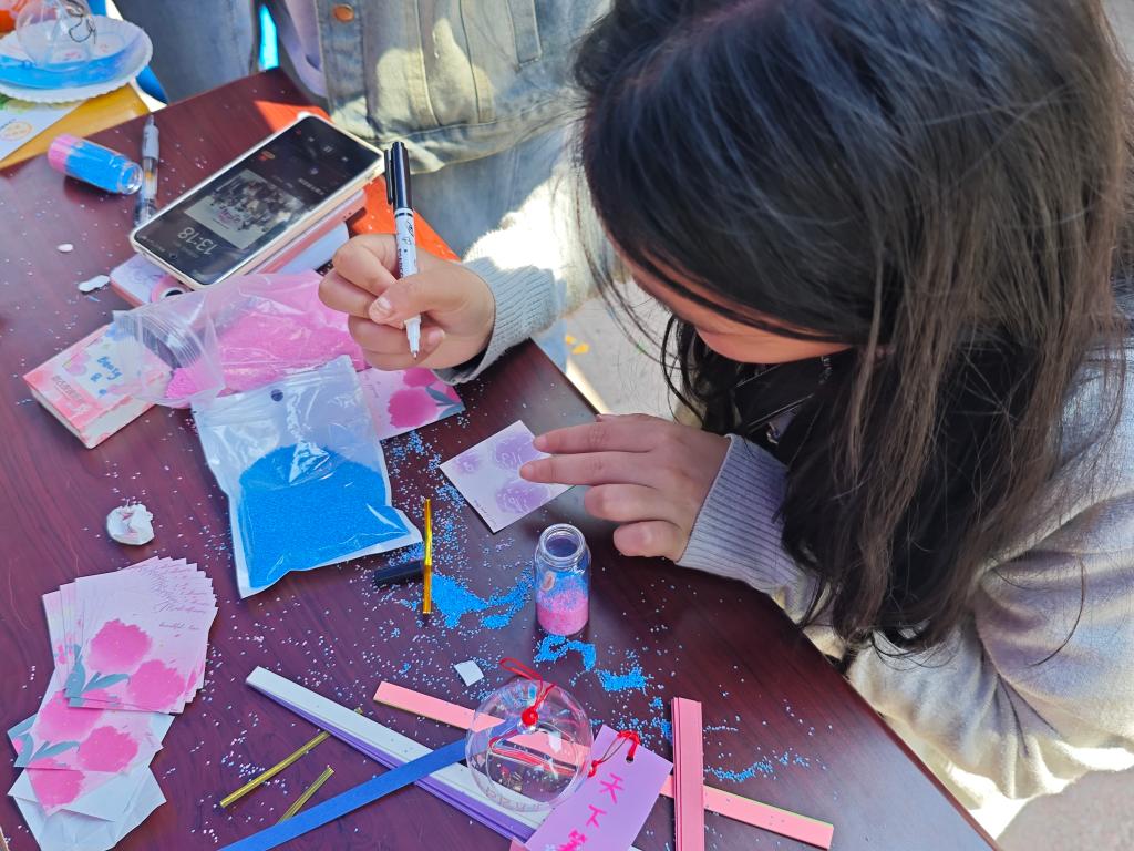 活动伊始,学生们在工作人员的引导下,以匿名或署名的形式,在便签上书写情绪、绘制图案或制作手工艺品,将其放入漂流瓶并进行装饰,同时还可以在漂流瓶内留下“回应邀请卡”,期待收获其他同学的暖心鼓励。创作完成后,学生可以选择收藏自己制作的漂流瓶,也可以与其他参与者互相交换,在交换中传递惊喜与温暖。部分精彩作品被集中展示在桌面上,供学生们欣赏和交流。许多学生驻足观看,分享创作灵感,交流创作经验,现场氛围热烈融洽。在制作漂流瓶的过程中,学生们通过创意表达释放情绪、舒缓压力,进一步提升了心理健康素养。