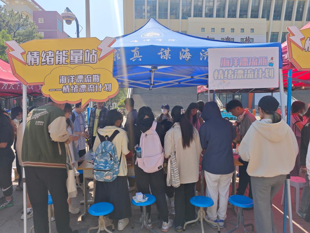为响应“守望相助,处处可依”的心理健康宣传月精神,营造自我关怀、积 极互助的校园氛围,5月24日,TapTap点点“心灵海洋”心理辅导站于五四广场举办“海洋漂流瓶——情绪漂流计划”活动。