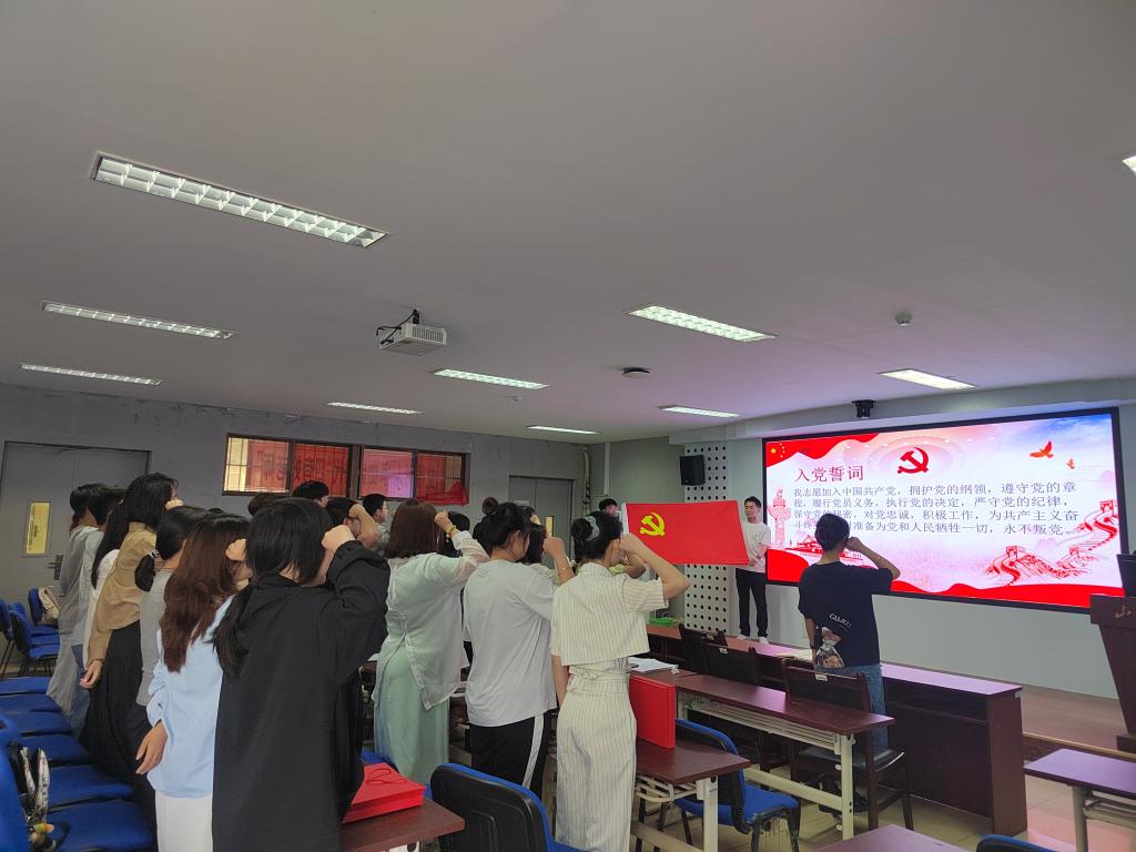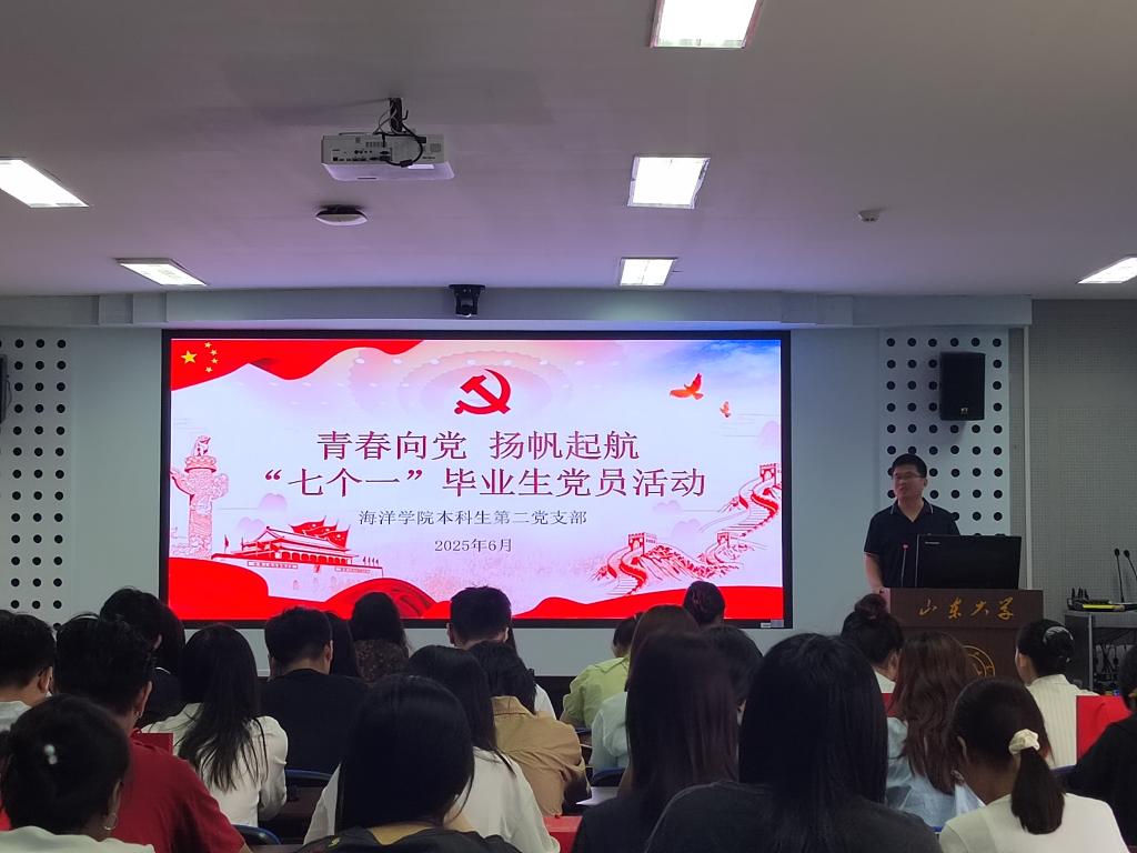 重温一次入党誓词。党员杨远航作为领誓人,带领大家重温入党誓词,用铿锵有力的誓词彰显强国有我的青春激情,促使毕业生党员将党性常怀于心,承诺离开校园后,秉承“学无止境、气有浩然”校训,践行“问海求真,谋海济世”院训,以身作则,充分发挥党员先锋模范作用。