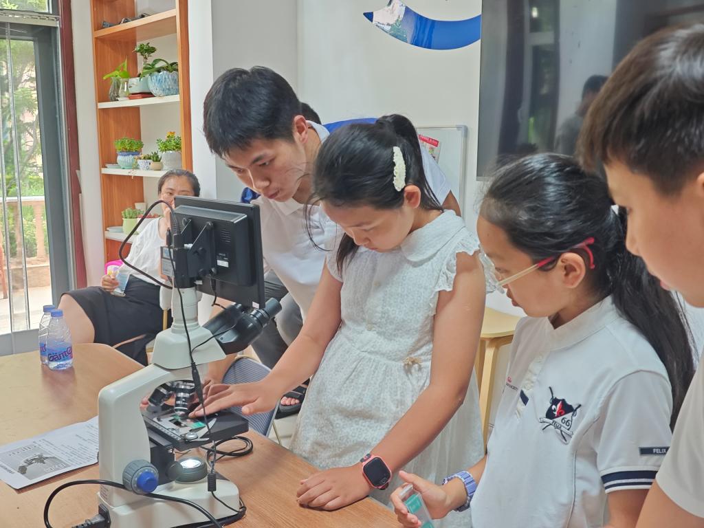 7月7日至7月19日,团队按计划、分批次前往威海市开园社区,开展了4期社区科普实验活动,聚焦微观世界探索与科学实践,带领社区青少年探索自然科学。