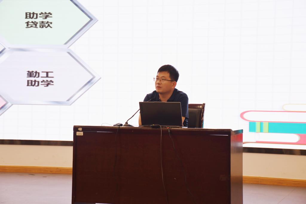 奖助政策教育环节,翟俊伟从奖助学金、学生保险、助学贷款、补偿代偿等方面,介绍资助政策与评定流程,详解评奖评优类型、条件及各项奖学金要求,带领新生学习学院德育与素质能力评价细则,鼓励其以“德智体美劳全面发展”为目标深耕专业、勇于创新。他还聚焦困难资助与助学贷款,具体讲解家庭经济困难认定及校园地、生源地助学贷款流程,填补政策认知盲区。新生踊跃提问,现场互动氛围热烈。
