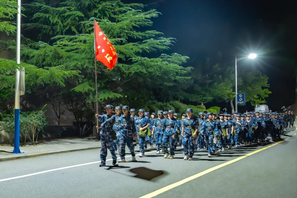 拉练磨砺意志,征途淬炼品格。夜空下,参训同学步伐坚定地踏上征途,任凭汗水浸透衣衫,依然相互扶持,相互鼓励。长途拉练是意志与体魄的双重考验,彰显出新生的坚韧与顽强,让同学们在挑战自我中深化了纪律意识,锤炼了吃苦耐劳的宝贵品质。