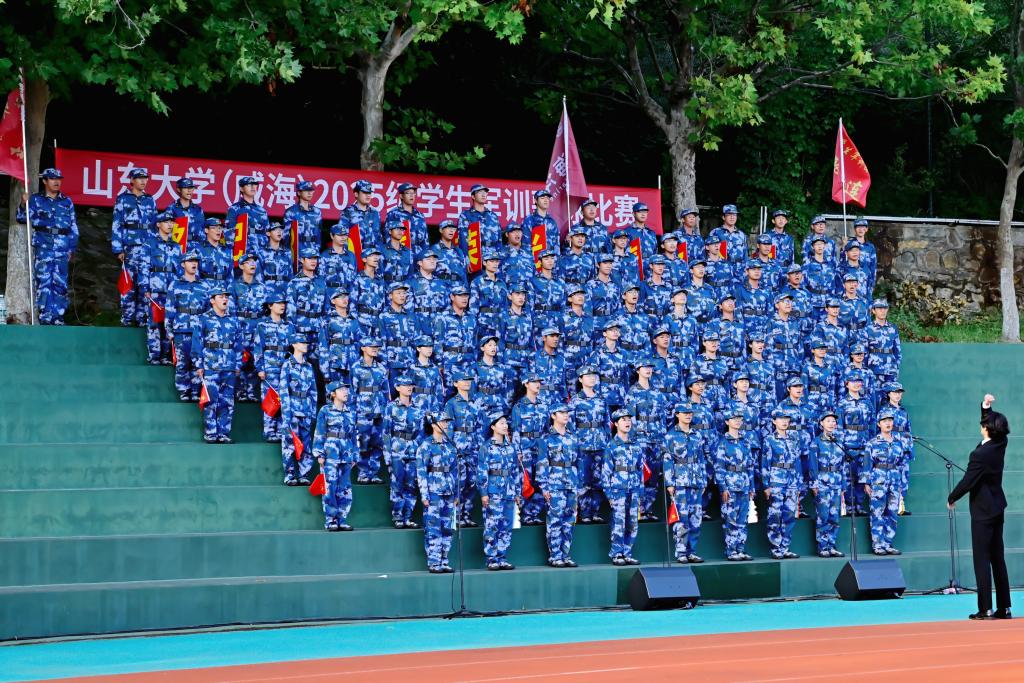 歌声嘹亮铸魂,青春逐梦扬威。军训歌咏比赛中,同学们利用训练间隙反复排练,打磨音准、节奏与队列。比赛当日,身着迷彩服的同学们身姿挺拔,在指挥引导下齐声高唱《山东大学校歌》与《就为打胜仗》,结合精彩的情景剧演绎,将歌曲演唱推向高潮。同学们手持扇子,巧妙组合出“80”字样,以此致敬世界反法西斯战争胜利80周年。歌声时而激昂、时而深情,既展现团结风貌,又传递家国情怀,赢得一致好评。
