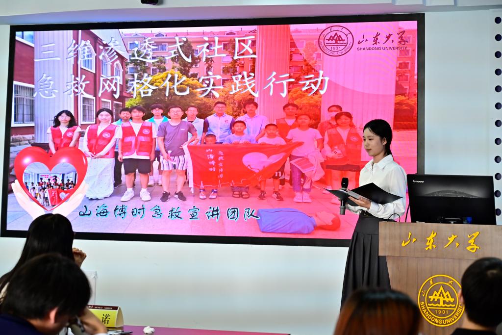 在答辩环节中,各实践团队紧扣项目背景、实践方式、过程、成果与媒体宣传五大要点,结合PPT进行了全面展示。其中,“肺部无核”宣传队响应“健康中国2030”政策,通过构建调研体系、聚焦易感人群、凝聚社会共识,致力于提升公众防核意识。“预‘艾’予爱”宣传队聚焦社区、校园及线上三大场景,结合公众偏好设计活动,为防艾事业贡献力量。“山海博时急救”宣讲团通过社区及学校宣讲结合物料发放,致力于填补社会应急体系短板。“壳膜智匠”实践调研团基于废弃甲壳材料探索引导骨再生膜研发与应用,为牙缺损患者提供治疗新思路。“七彩假期,星光伴行”队针对白手杖公益服务中心心智青年生活技能弱、情感表达障碍问题,提供定制化帮扶服务。“鲁疆同心,齐美中华”实践团通过培养专业队伍、加强部门协作、增设现场平台,推动帮扶工作发展。“桑梓振兴,阡陌日新”团队聚焦全国五省七镇十一所中小学,为河南儿童制作生理健康材料。“护野先锋”志愿团聚焦野生动植物保护宣传与实践,着力提升公众保护意识,探索生态保护长效机制。“心桥筑梦,法网护苗”团队关注乡镇青少年孤独、困境及心理问题,采用“心理+法治”双轨介入模式提升其情绪管理及团队协作能力。“心光摆渡,玛迦青年”团队研究初中生学习压力与心理健康,通过调研构建数据库。“红韵溯源寻访团”在景点、社区等多场景开展活动,致力于红色文化传播与传承。