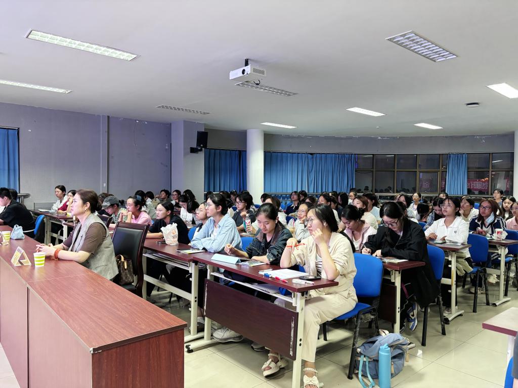 活动伊始,志愿者现场为学生发放了宫颈健康宣传册,内容涵盖HPV病毒知识、宫颈癌预防要点及疫苗接种指南等,让学生在课堂前建立初步的健康认知。课堂中,王书博以“预防HPV感染,远离宫颈癌”为主题,从宫颈癌的发病现状与年轻化趋势、HPV病毒的特性与传播途径、宫颈癌的三级预防策略、HPV疫苗接种知识到宫颈癌筛查指南等方面进行了系统讲解。王书博由宫颈癌的临床症状、变化特点引出了致病元凶——HPV。随后,她结合实际案例和临床经验为在场学生科普了宫颈癌的三级预防理念,以及HPV疫苗接种前后的注意事项等。同时,王书博呼吁适龄学生应及时接种HPV疫苗。活动最后,宿美玲进行总结发言,鼓励学生将所学知识运用到日常生活中,爱护宫颈健康,养成健康生活习惯。