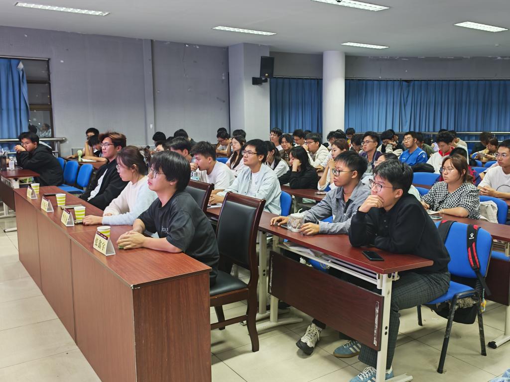 在科技创新竞赛方面,卢英杰结合自身科研经历,分享了科研入门路径,并介绍了科创团队的具体分工,强调参加比赛应坚持到底,理性看待结果。同时,她认为在课堂中要高效吸收知识,平衡好学业与科研。李佳敏围绕大一基础学科学习展开,向同学们推荐了网课资源与校园直播回放功能,对考前规划、重点获取与复习环境选择等学习技巧作了详细讲解,还分享了运动、睡眠等压力调节方法,鼓励同学们用外界力量来约束自己。在社会实践方面,张鑫宇首先解读了社会实践的重要性与官方文件要求,建议同学们先加入成熟团队学习。对于想要自主带队的同学,可结合专业与社会热点选题,按贡献度管理队伍,及时整理实践素材。在学生工作与志愿活动方面,孙铭赫以“热爱”阐述留任初心,提出“少想多做增勇气、多想少做提效率”的工作思路,建议同学们遇困时主动求助,还强调了发掘核心竞争力的重要性,并以“知行合一”寄语同学们。自由提问环节,同学们积极提出疑问,四位主讲人结合自身经历给出具体建议,进一步化解了同学们的困惑,让经验传递更具针对性。