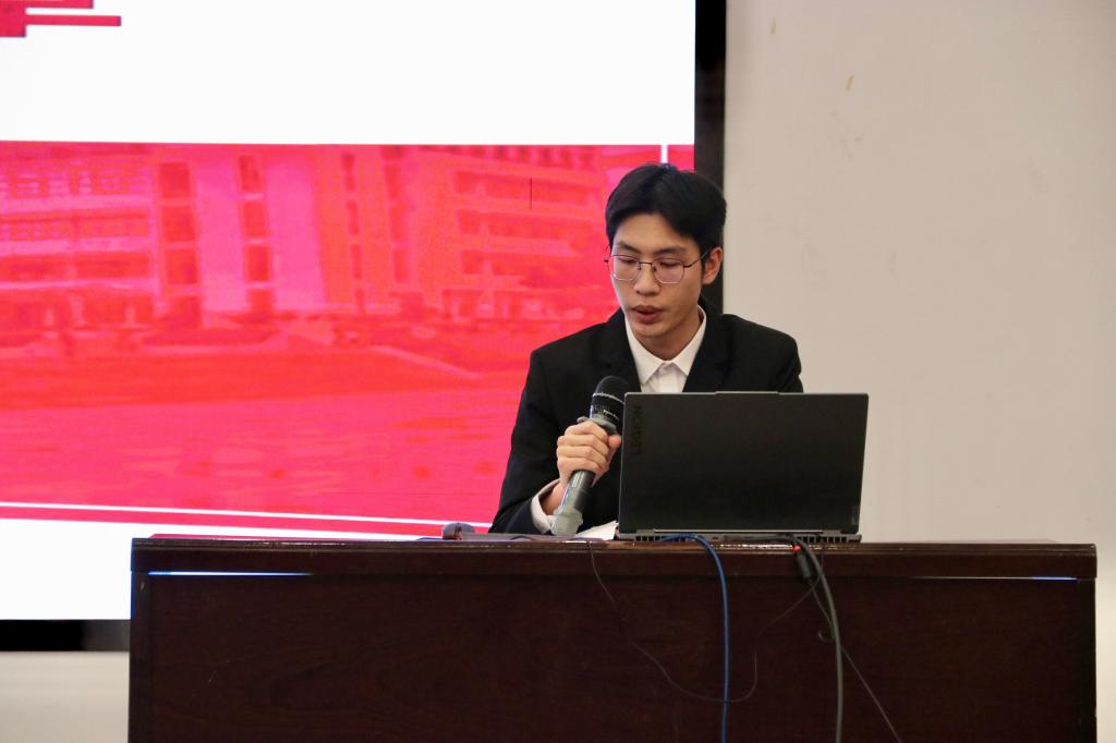随后,“海院之星”事迹宣讲会正式开始,四位获奖同学依次分享成长故事,传递榜样力量。向静雯从学生工作、实践服务、学业科研、美育生活四维度分享多维成长路径,结合自身在学业科研中的收获感悟、实践服务中的组织经验,强调“热爱是起点,尝试是突破”,鼓励学生积极探索自身潜能;朱祥围绕个人经历,分享以行动破局、在学生工作中积累经验的过程,结合真实案例分享心得体会,传递“在服务中成长”的学生工作理念;李嘉立分享从作为志愿者参与志愿活动到成为蓝丝带蔚蓝保护协会主要负责人的经历,拆解“调研-执行-复盘”的活动闭环经验,结合过往志愿实践细节,鼓励学弟学妹用心感受过程、勇敢迈出第一步;彭誉佳分享从青苗计划起步到带队斩获国创赛全国金奖的科创经历,结合备赛中的团队协作、材料打磨故事,拆解选题定位、多学科组队的实用技巧,传递“敢闯敢创”的青春态度。