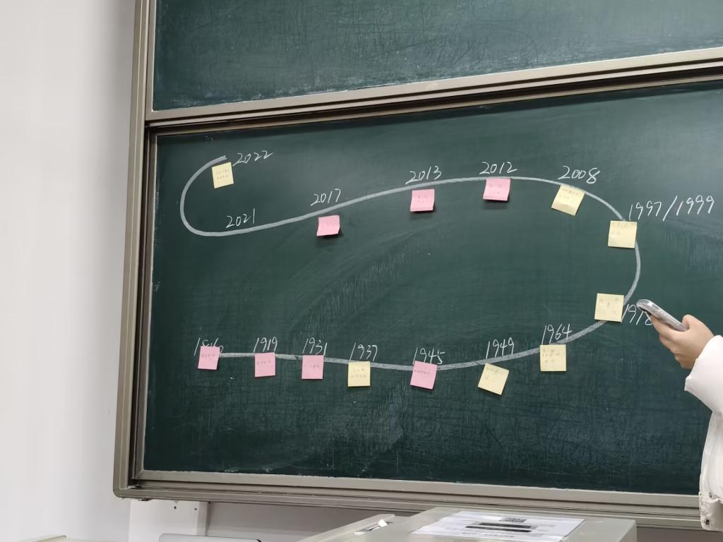 活动伊始,各班级代表队依次参与互动环节,聚焦五四运动、七七事变、百团大战等历史事件以及杨靖宇、狼牙山五壮士等英雄人物,选手或以精准的肢体动作还原历史场景,或用简洁的语言描述事件背景,现场气氛活跃。随后进行的“亲手贴出历史脉络”环节,考验学生对历史的系统把握能力。各班级代表队分组协作,将印有平型关大捷、台儿庄战役、抗战胜利等关键事件的卡片,依照时间顺序准确粘贴在时间轴线上。通过讨论与核对,选手梳理了抗战历史的发展脉络,深化了对重大事件战略意义和民族精神的理解。亲手排列历史节点的过程,使他深刻认识到抗战胜利是无数先烈用鲜血和牺牲换取的,每一个时间点都蕴含着厚重的民族记忆。随后的抢答环节将活动推向高潮。学生根据特定的图片组合,积极抢答其代表的红色历史事件、经典歌曲及影视作品。参与学生表示,活动不仅加深了个人对历史事件内在精神的认识,也在集体协作中强化了青年一代的责任意识。