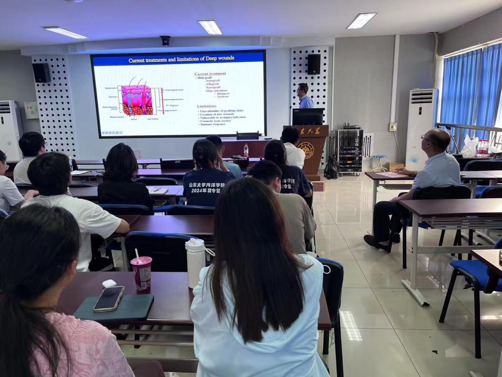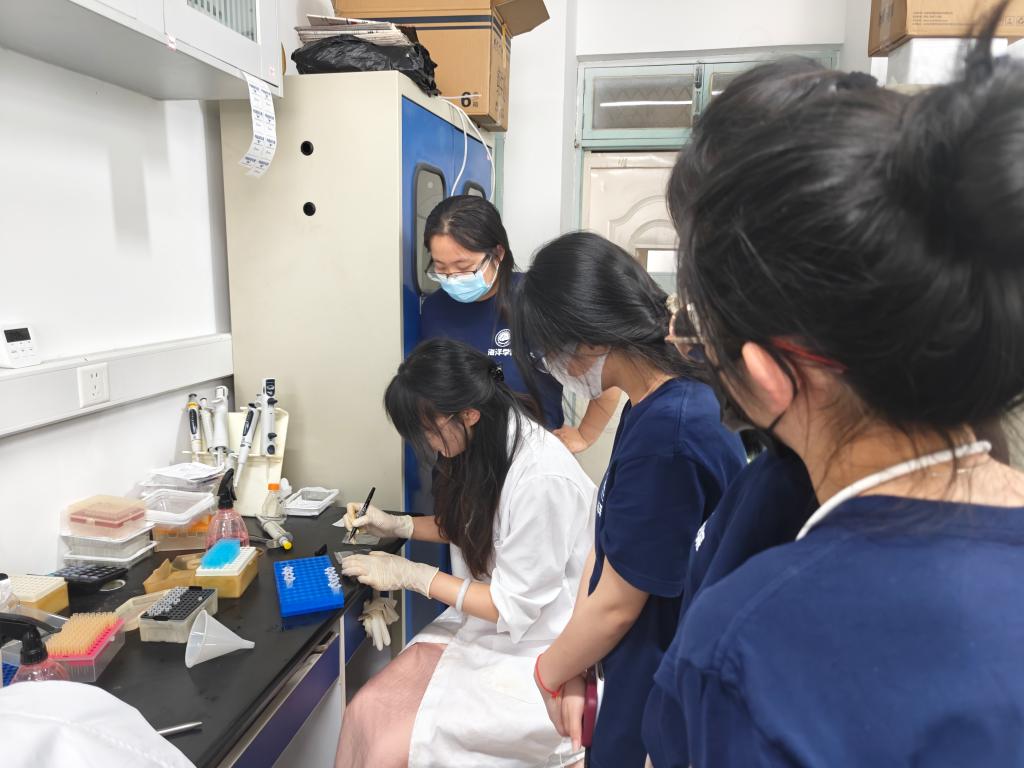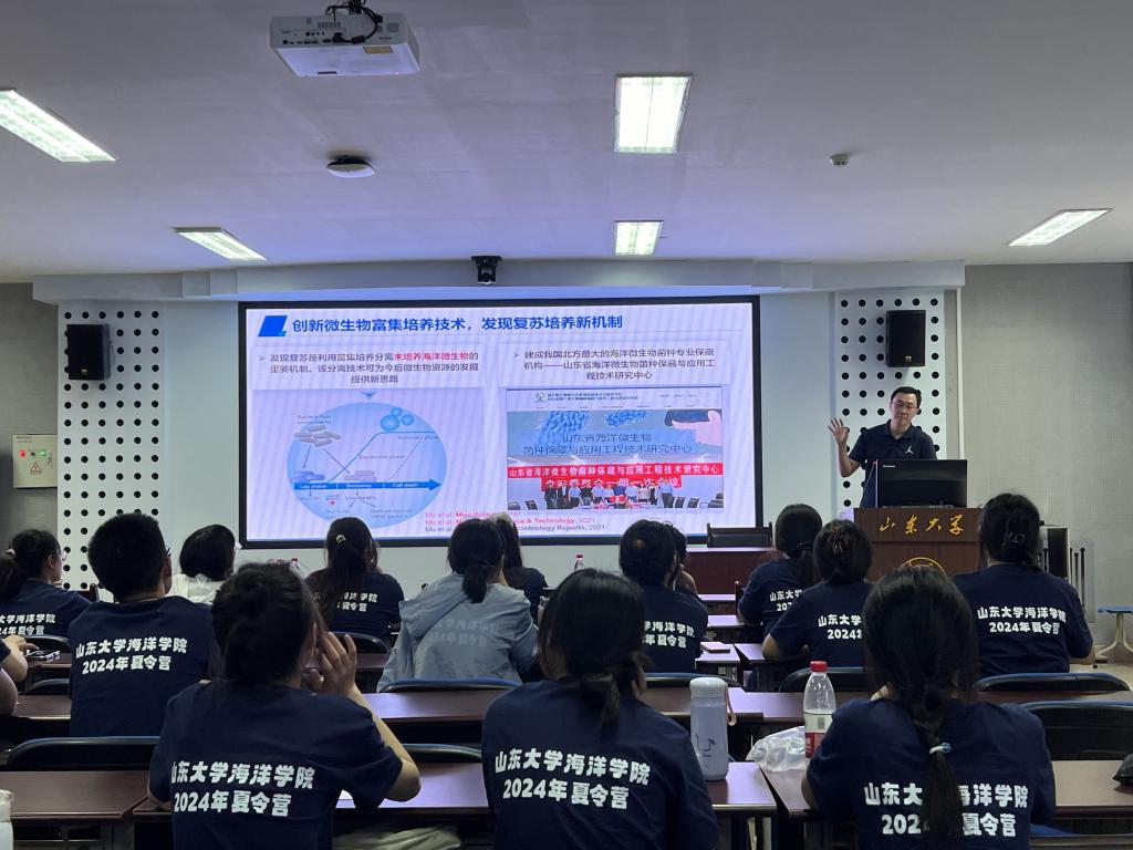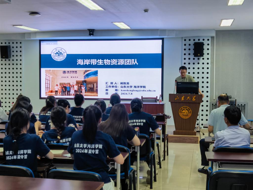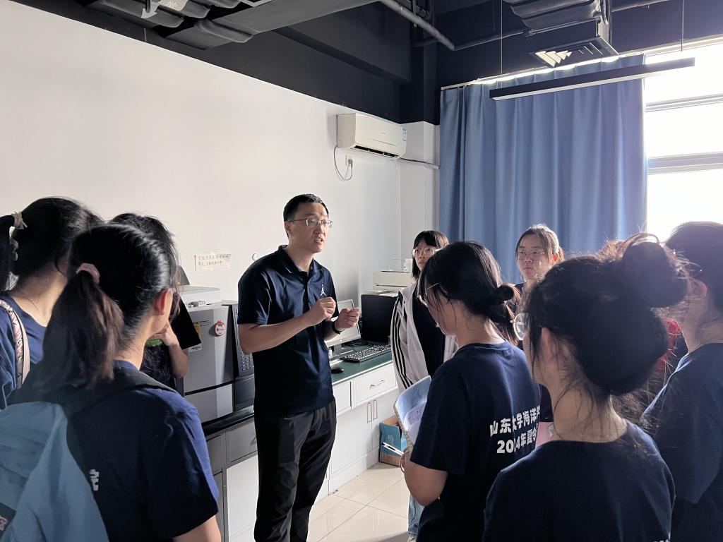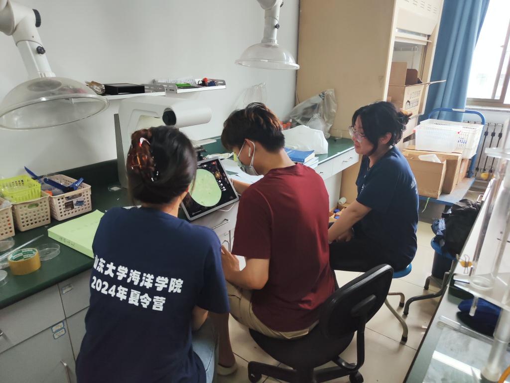 夏令营期间,学院11支研究团队分别开展了多项特色夏令营活动,通过学术讲座、交流研讨、观摩学习、实验操作等方式展示研究团队的方向特色、科研平台、科研成果、师资力量及学生培养等情况。其中,材料与化工课题组,营员近距离观察仪器设备,学习实验技术,体会科研魅力。动物微生态制剂山东省工程研究中心,大家参与实验操作与数据分析,取得显著效果。海洋牧场浮游生物课题组,营员了解威海近岸海蛇尾时空变化的研究方法和意义,学习掌握显微镜鉴定海蛇尾、海胆幼体技术和高速摄像机图像的处理方法。海洋微生物课题组就厌氧铁还原菌、海洋滑动菌多糖降解等内容向营员细致介绍,穆大帅教授就前沿研究课题及未来规划与营员深入交流。海岸带生物资源课题组带领营员参观实验室和标本室,体验采集样品、提取DNA、生物信息学分析等实验环节。海洋牧场工程与生态学课题组,营员学习Linux安装与基础、海水水样成分测量、3D打印及水下机器人操作、水槽实验以及鱼类解剖取样技术。海洋微型生物多样性与进化课题组,营员操作完成草履虫基因组DNA提取、草履虫体内重金属离子含量检测等实验。水生动物营养与饲料课题组指导营员学习饲料基本营养物质测定、水产饲料制作虚拟仿真软件使用方法,赴山东大学海洋科技创新中心及相关企业观摩学习,组织营员参加每周组会,切身感受课题组的学习氛围。水环境污染与生态风险评估课题组,营员实地参观山东大学海水青鳉养殖基地,了解海水青鳉的生活习性、养殖技术及日常维护管理等环节;通过实验操作,掌握基础养殖技巧,学会水质监测、病害防治和鱼类行为录制的先进仪器设备;参与“海洋酸化及新型污染物微纳塑料对典型模式生物的生态效应及环境机理”专题研究,加深对海洋酸化和微纳塑料污染对海洋生态系统严重危害的认识。生物医用材料与生物资源利用课题组,营员体验药剂实验和制备水凝胶实验,学习显微镜下观察皮肤切片,现场聆听孙国明博士作主题为“转化再生医用材料的挑战和机遇”的学术报告,促进师生交流。